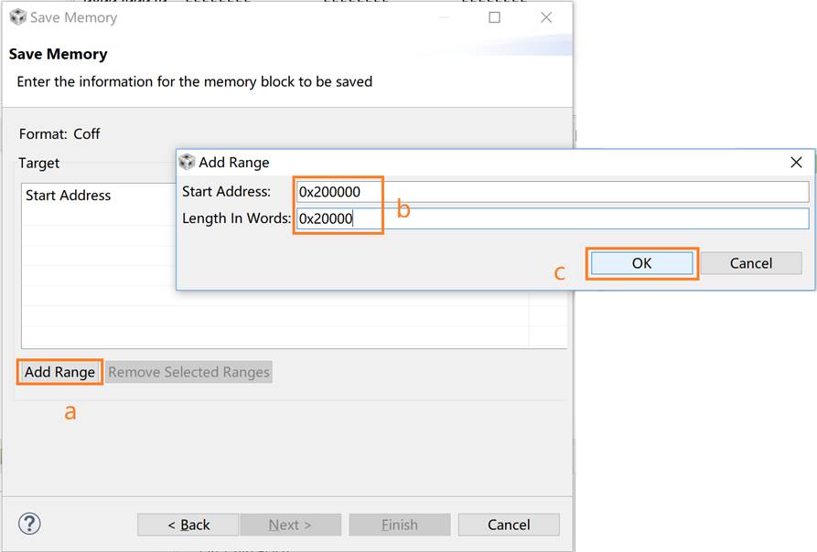 5.3 勾选需要导出的内存范围,点击 “Finish”
